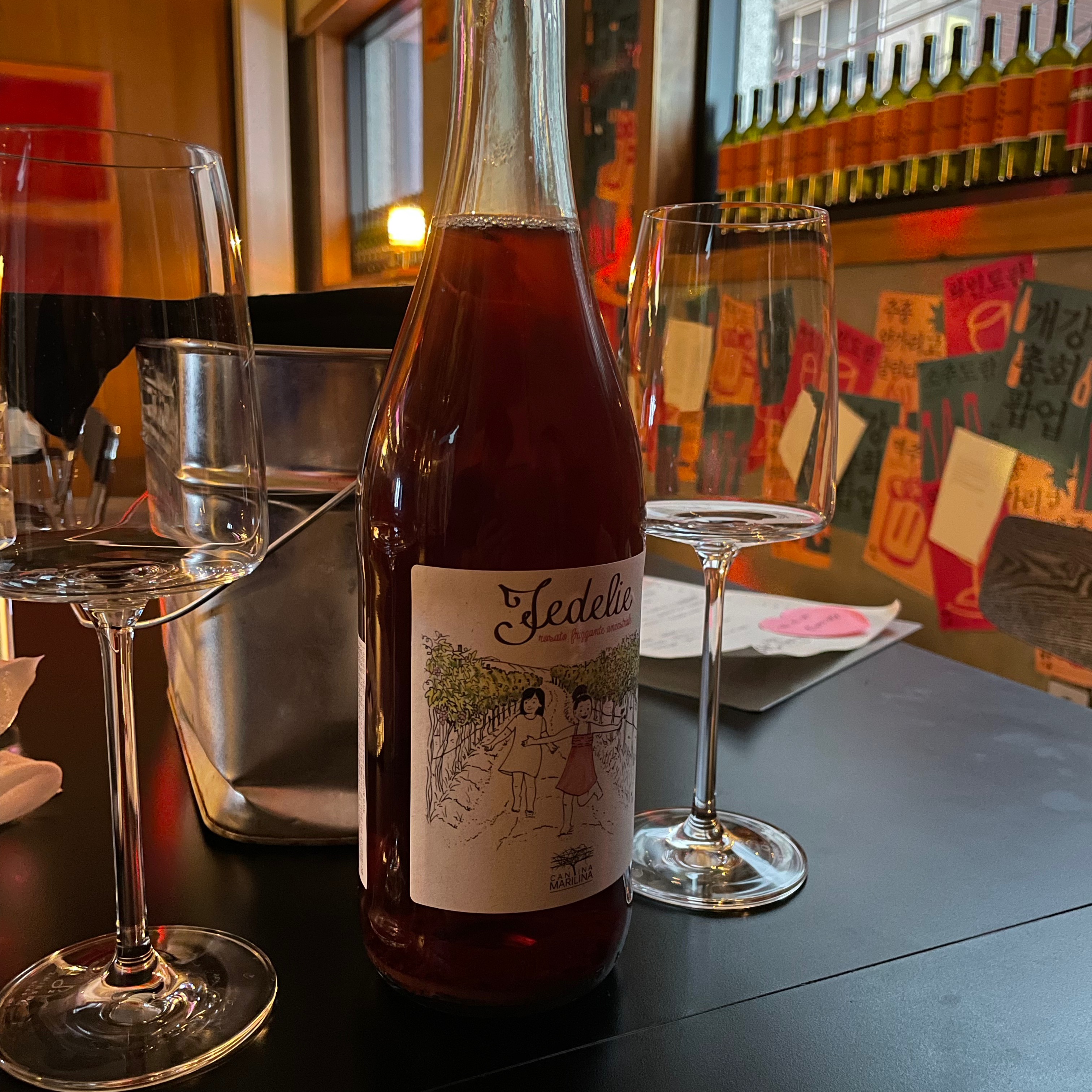 마라수제비와 오렌지와인의 조합. 생각보다 아주 좋았다. 이달의 콤비상 수여해도 아깝지 않다. 마라로 화해진 혓바닥에 새큼한 오렌지 와인이 닿으면 풍미가 두배. 짜파게티 시켜서 마라소스와 함께 먹는것도 맛있었다.