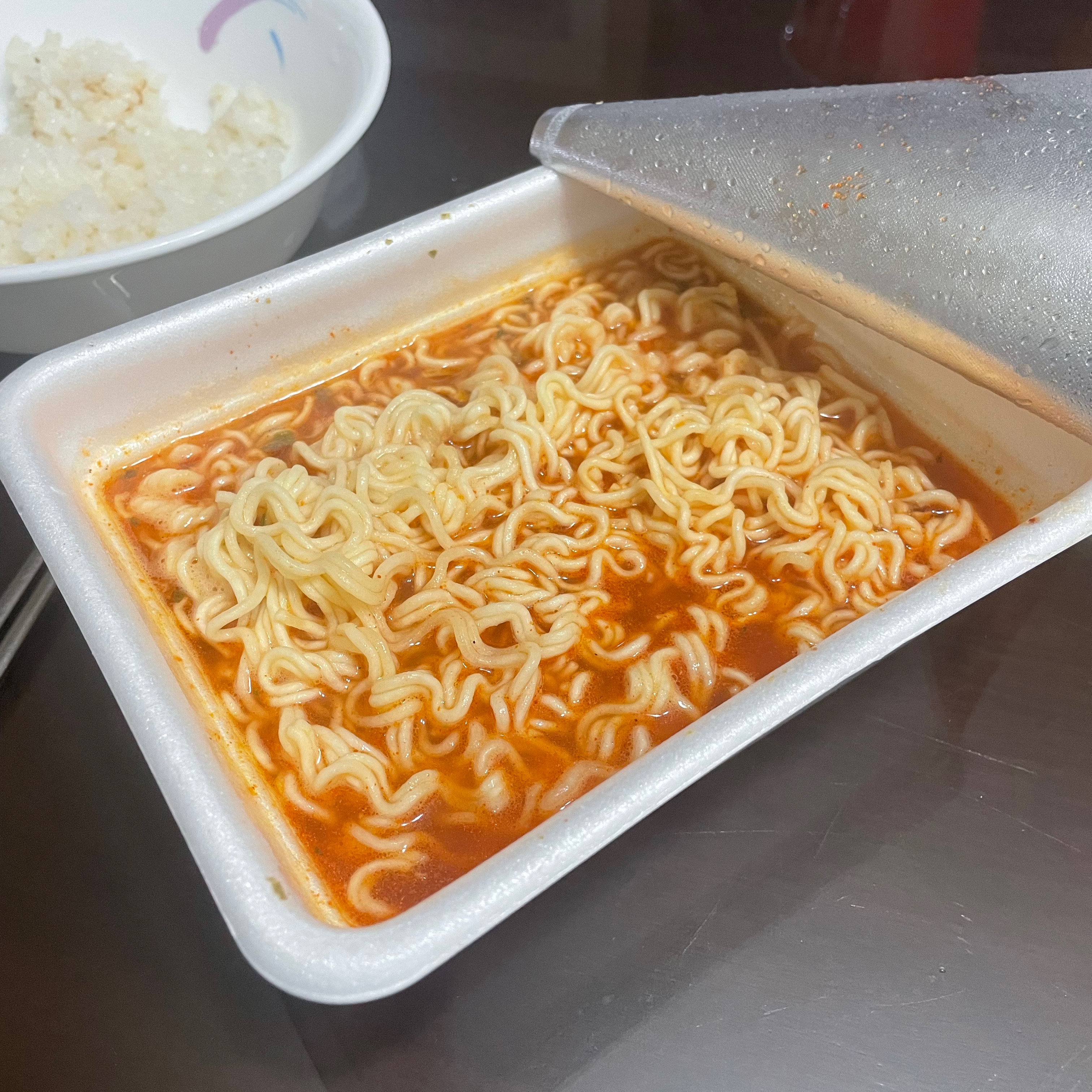 술 많이 먹은 다음날 해장은 이상하게 탄수화물이 땡기더라. 도시락라면에 밥도 말아 먹음.