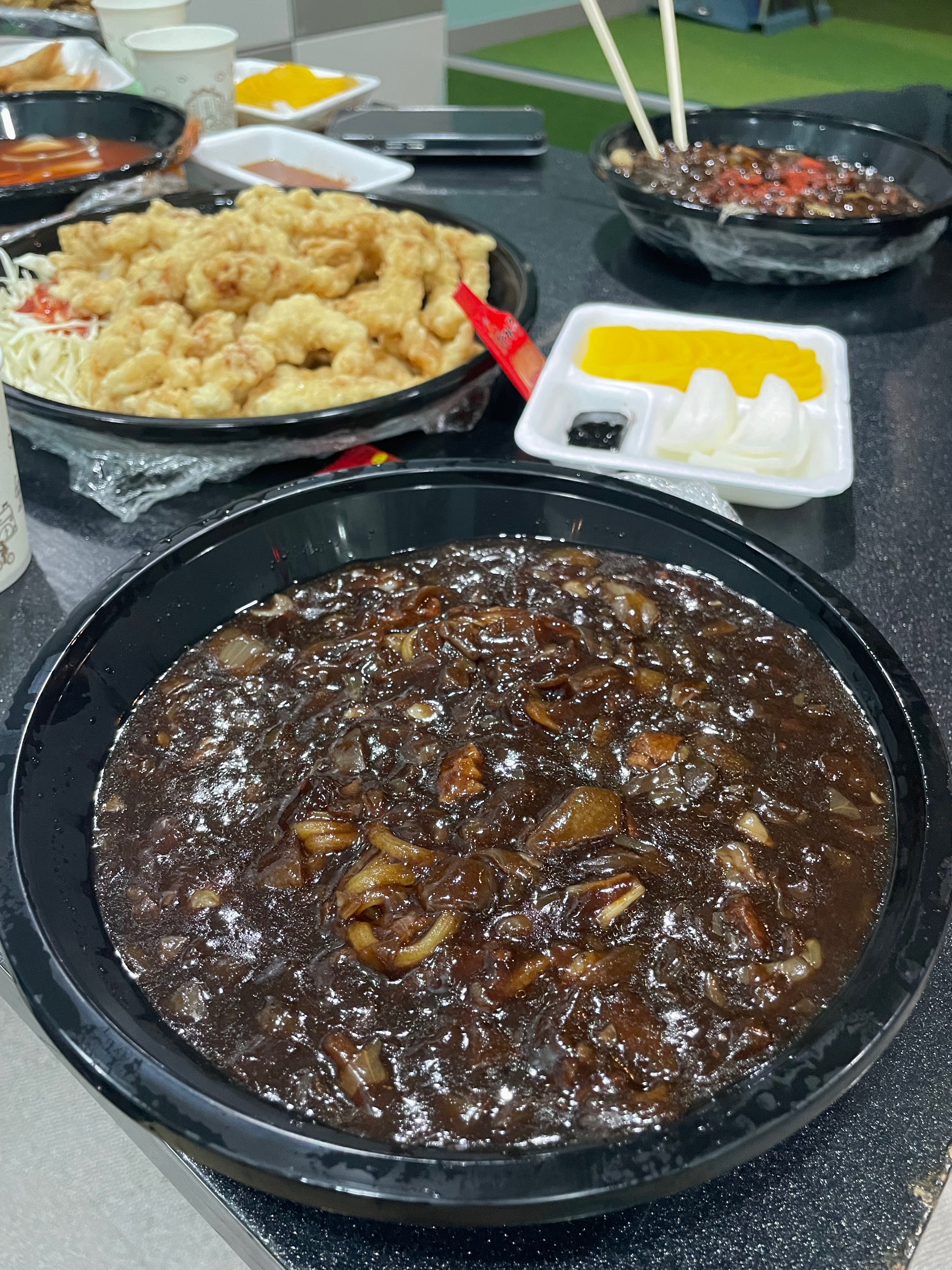 그날 오후에는 생애 첫 스크린 골프를 쳤다. 스크린골프엔 짜장면이라길래 짜장면 시켜먹음